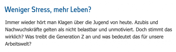 Nun wie sind die Vorstellungen der so genannten Generation Z, also nach 1995 Geborenen? Sind sie wirklich so unmotiviert, umbelastbar und nicht leistungsbereit, wie es von den Arbeitgebenden oft beklagt wird?