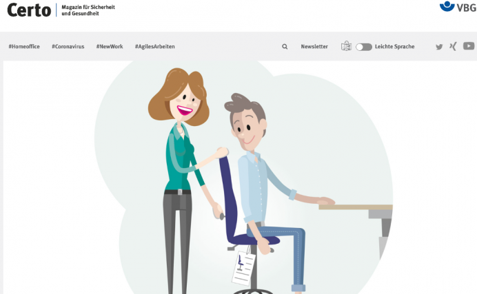 Richtiges Sitzen am Schreibtisch macht im Arbeitsalltag viel aus – ob im Büro oder im Homeoffice. Ob die Rückenschmerzen am Stuhl liegen könnten oder das ständige Augenreiben vielleicht an dem falsch eingestellten Bildschirm, finden Sie mit dem Haltungs-Abc der VBG heraus!